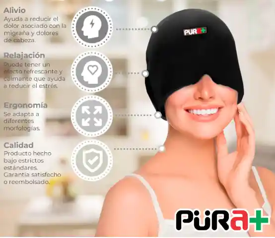 El Pad Confort Gel para Migraña (Ref: 11473) de Pura+ es una compresa terapéutica de gel frío/calor diseñada para aliviar dolores de cabeza, migrañas, ojos hinchados y estrés. Reutilizable y no tóxico, ofrece cobertura ergonómica con ajuste cómodo, ideal para uso en casa u oficina para reducir la tensión y la inflamación.