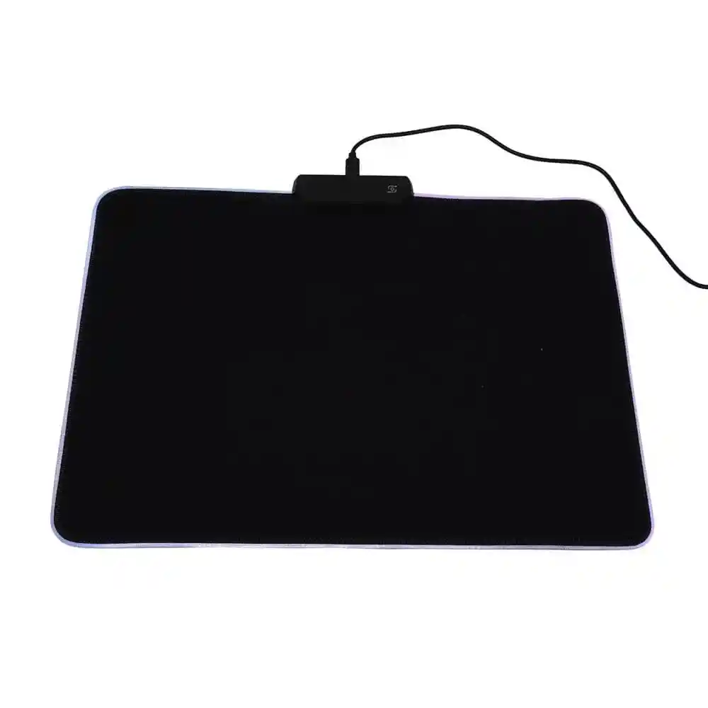 Mouse Pad RGB de 22x35 RGB-01 es un pad de escritorio que ilumina tu setup con luces RGB. Tiene un tamaño de 22x35 cm, perfecto para jugar o trabajar. La superficie es suave, lo que hace que el mouse se deslice súper bien. Además, las luces son personalizables y le dan un toque cool a tu espacio. Su base es antideslizante, así que no se mueve. ¡Ideal para gamers y para los que quieren algo más en su escritorio! plano – 26 x 35cms – luces RGB – control táctil – conexión USB – cable 1.8 mtrs – plug & play – antideslizante