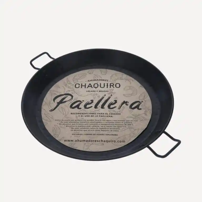 Paellera fabricada en lámina de hierro teflonada ideal para los 3 tamaños del ahumador. Medidas: 40 x 50cm, Peso 1kg. Capacidad: 7 a 8 porciones.