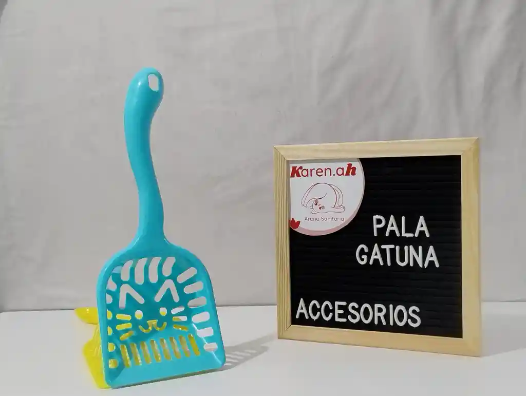 Pala recogedor de arena para gato, medidas: largo de 27cm aprox, ancho de la pala 10cm, es plástica, resistente, de fácil uso y limpieza.