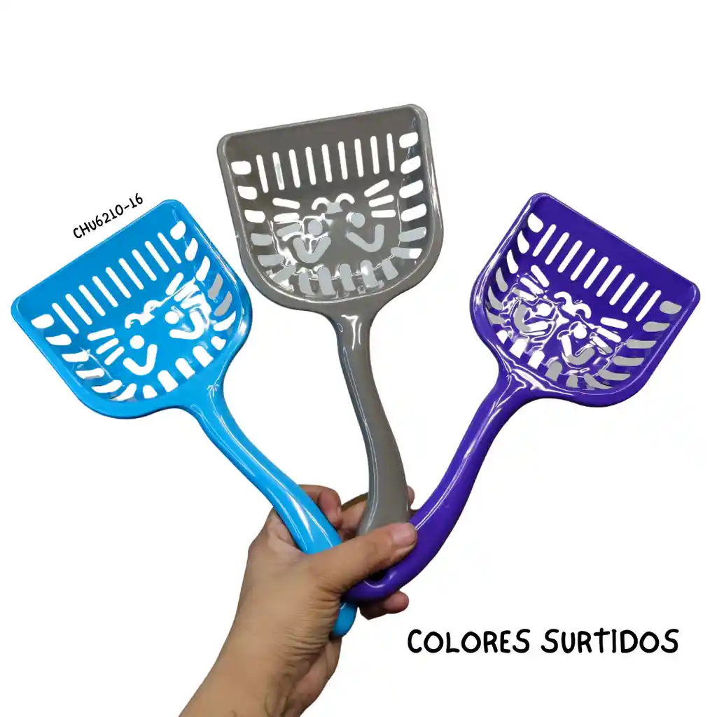 Pala para recoger excrementos del arenero, hecha en plastico resistente. COLORES SURTIDOS.