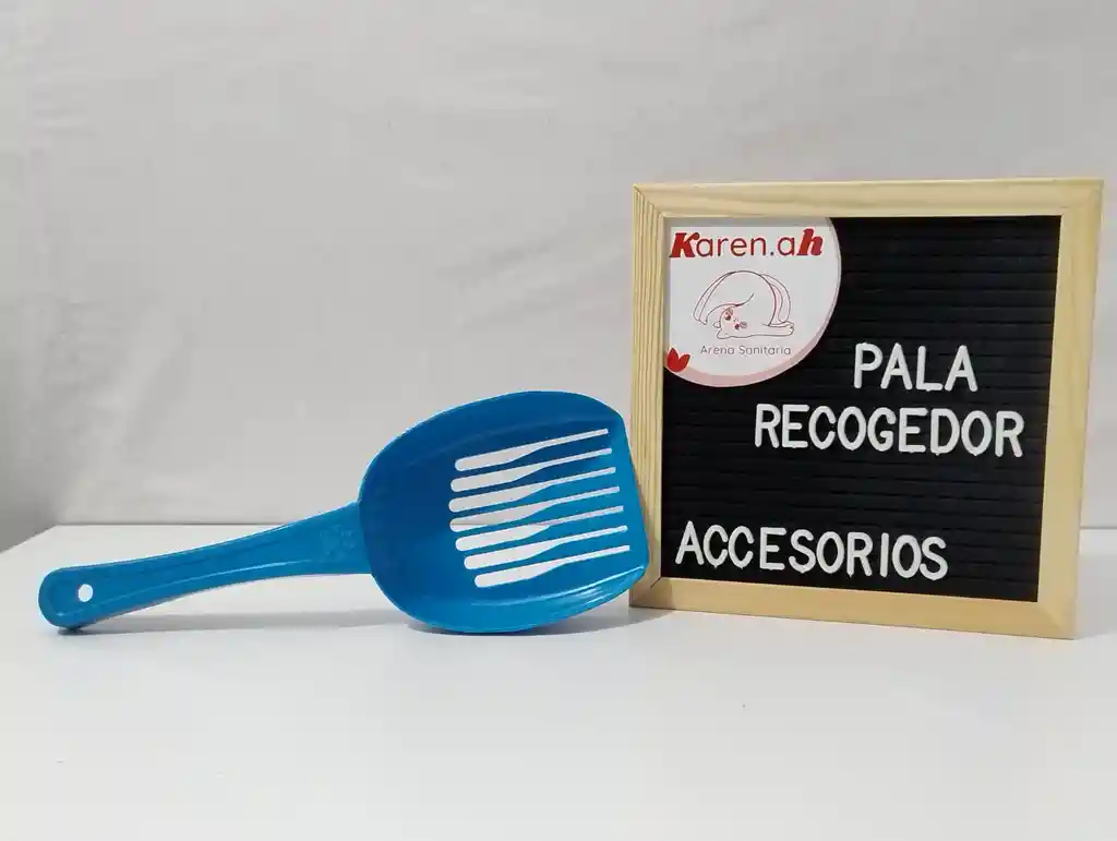 Pala recogedor de arena para gato, medidas: largo de 27cm aprox, ancho de la pala 10,5cm, es plástica, resistente, de fácil uso y limpieza.