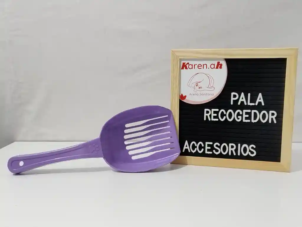 Pala recogedor de arena para gato, medidas: largo de 27cm aprox, ancho de la pala 10,5cm, es plástica, resistente, de fácil uso y limpieza.