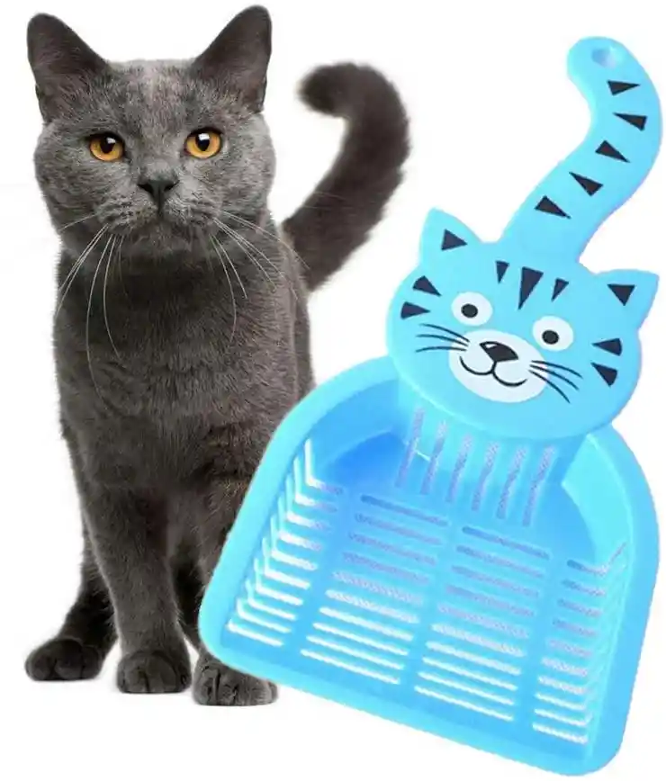 Pala recogedora especial para limpiar la arena de tu gato. Figura de gato, colores variados.
