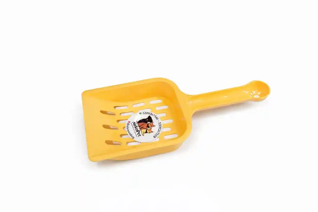 Pala recogedora plastica ideal para mantener limpia la arena de los gatos tamaño mediano para fácil manejo, colores surtidos