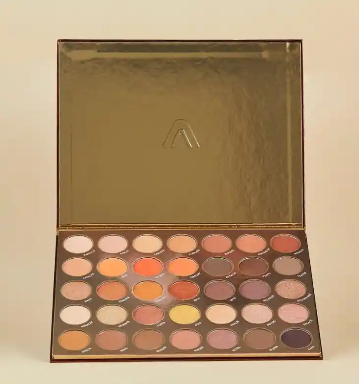 Nuestra paleta Atemporal tiene 35 colores en tonos tierras, entre los que podrás encontrar 21 mate y 14 satinados, de alta pigmentación y fácil difuminación.