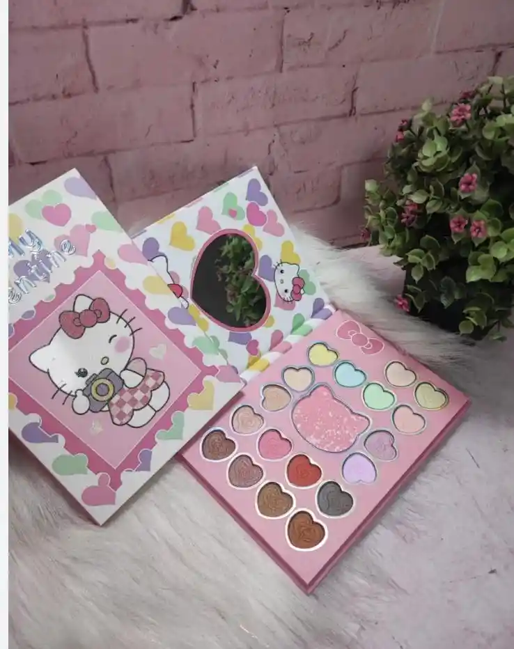 Esta es una paleta de sombras de ojos y rubor de Hello Kitty con temática "Be My Valentine"