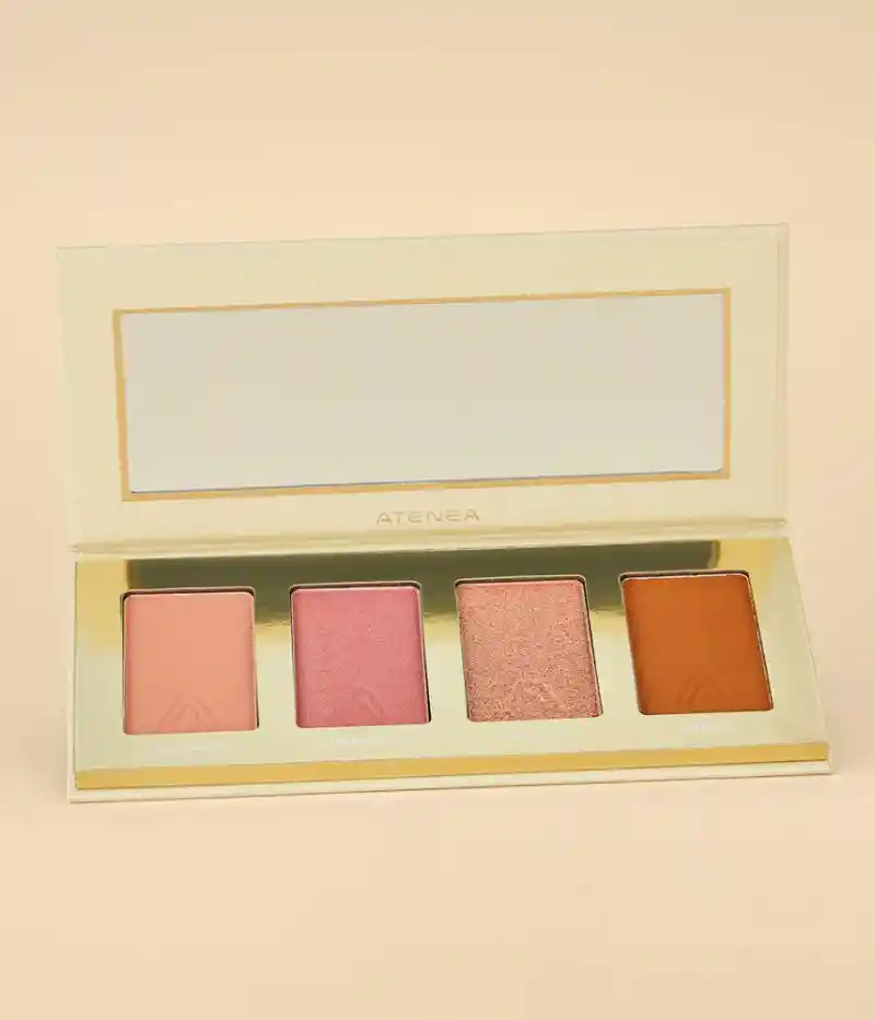 ESSENTIAL es una paleta multipropósito en la que encontrarás rubor mate y satinado, bronzer e iluminador, todo en un solo lugar. Los colores son de alta pigmentación y fácil difuminación. Su presentación es compacta. Puedes llevarla a todas partes. Características: - Los colores son de alta pigmentación y fácil difuminación. - Su presentación es compacta. - Puedes llevarla a todas partes, ya que su empaque es muy práctico. - Incluye espejo. Modo de uso: - Tomas una brocha de maquillaje para bronzer o rubor (esta te sirve para ambos productos), y la posicionas en las mejillas o pómulos y difuminas. - Para el iluminador se recomienda un pincel más delgado y lo aplicas en el hueso cigomático y le das la intensidad que desees. LIBRE DE CRUELDAD