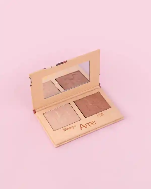 Iluminador en polvo con alto contenido de perlas ultrafinas luminiscentes multitono que absorben y reflejan la luz para ajustarse a los diferentes matices de la piel.
