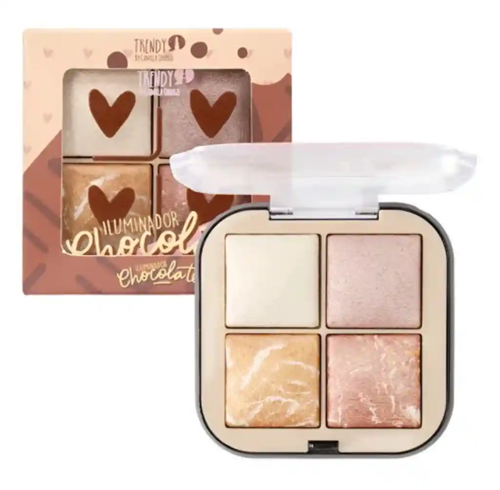 Es un iluminador compacto en polvo de la marca Trendy, pensado para aportar un brillo radiante y sofisticado al maquillaje. Suele presentarse en una paleta con varios tonos cálidos tipo “chocolate” o una selección de colores complementarios que incluyen tonos plateados, dorados, oro rosa y terracota con reflejos.