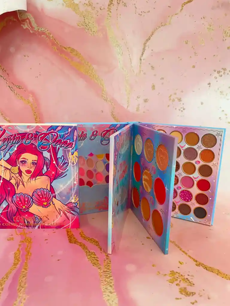 paleta en forma de libro con 69 tonos, incluye rubores e iluminadores. presentación de lujo.
