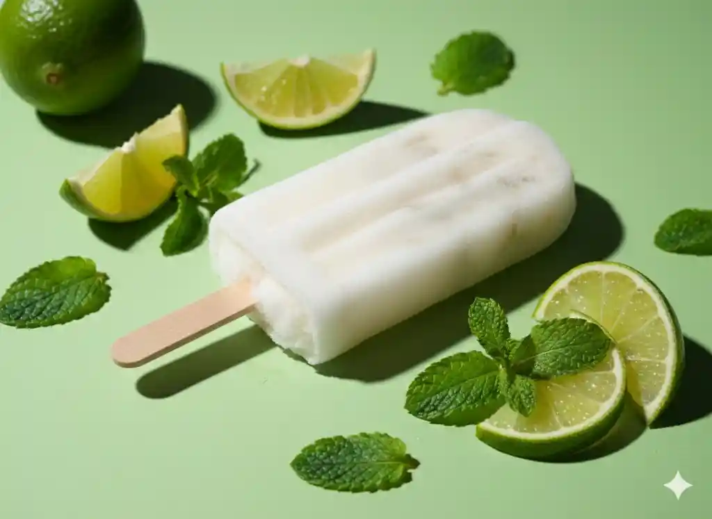 Paleta artesanal con limón y hierbabuena, súper refrescante y con un toque cítrico irresistible. Ideal para los días de calor o para un antojo diferente.