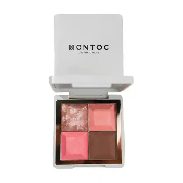 La paleta Light Set, reúne en un estuche compacto tres productos muy útiles para definir el rostro: bronceador, rubor e iluminador. viene en tres tonos versátiles: carlota, leticia y aurora, que se adaptan fácilmente a diversos tonos de piel. El producto se presenta en una paleta compacta cuadrada, fabricada en plástico rígido de alta resistencia, diseñada para uso cosmético profesional y portabilidad diaria. El empaque exterior cuenta con acabado mate liso en color blanco, que favorece la durabilidad, reduce marcas de uso y comunica una estética clean y funcional. El sistema de apertura es tipo bisagra trasera, integrada al cuerpo del empaque, permitiendo una apertura estable y controlada. La tapa incluye impresión directa del logotipo MONTOC en tinta oscura de alta legibilidad, centrado y alineado, reforzando reconocimiento de marca y coherencia visual. En el interior, la paleta incorpora un marco metálico interno con acabado reflectivo, que estructura y protege las cavidades del producto, aportando mayor rigidez y una percepción premium. Contiene cuatro godets cuadrados de igual tamaño, dispuestos en formato 2x2, optimizados para una carga equilibrada del producto y facilidad de uso con brocha.