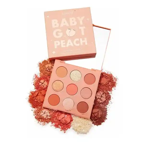 Es una paleta monocromática en tonos melocotón contiene 9 tonos en 3 acabados diferentes: mate, metálico y glitter.