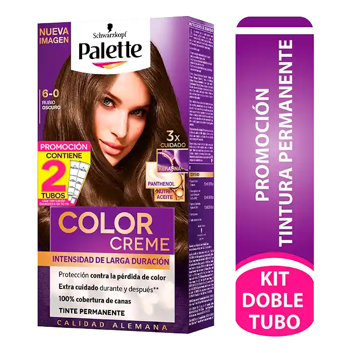 Palette tintura capilar permanente, protección contra la perdida del color color rubio opscuro caja x 2 tubos