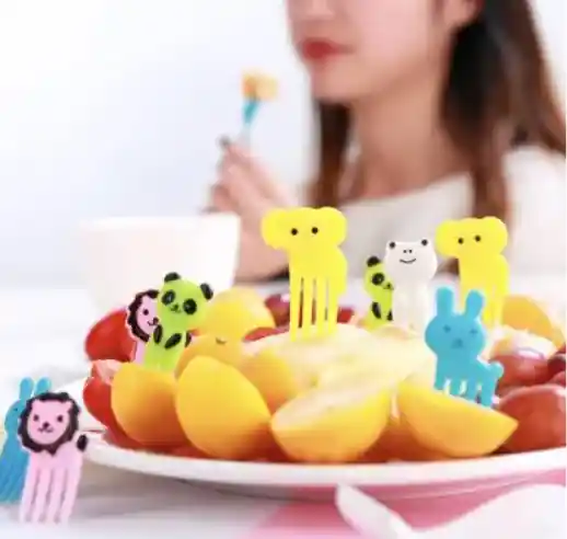 Haz que tus loncheras, recetas y onces para tu bebé grande, sean más llamativas y divertidas, con nuestros paquetes de palillos de diferentes diseños. Palillos variados: 10 palillos combinados entre palillo largo, corto, tipo tenedor largo o corto, ojos animales o muñequitos de colores variados.