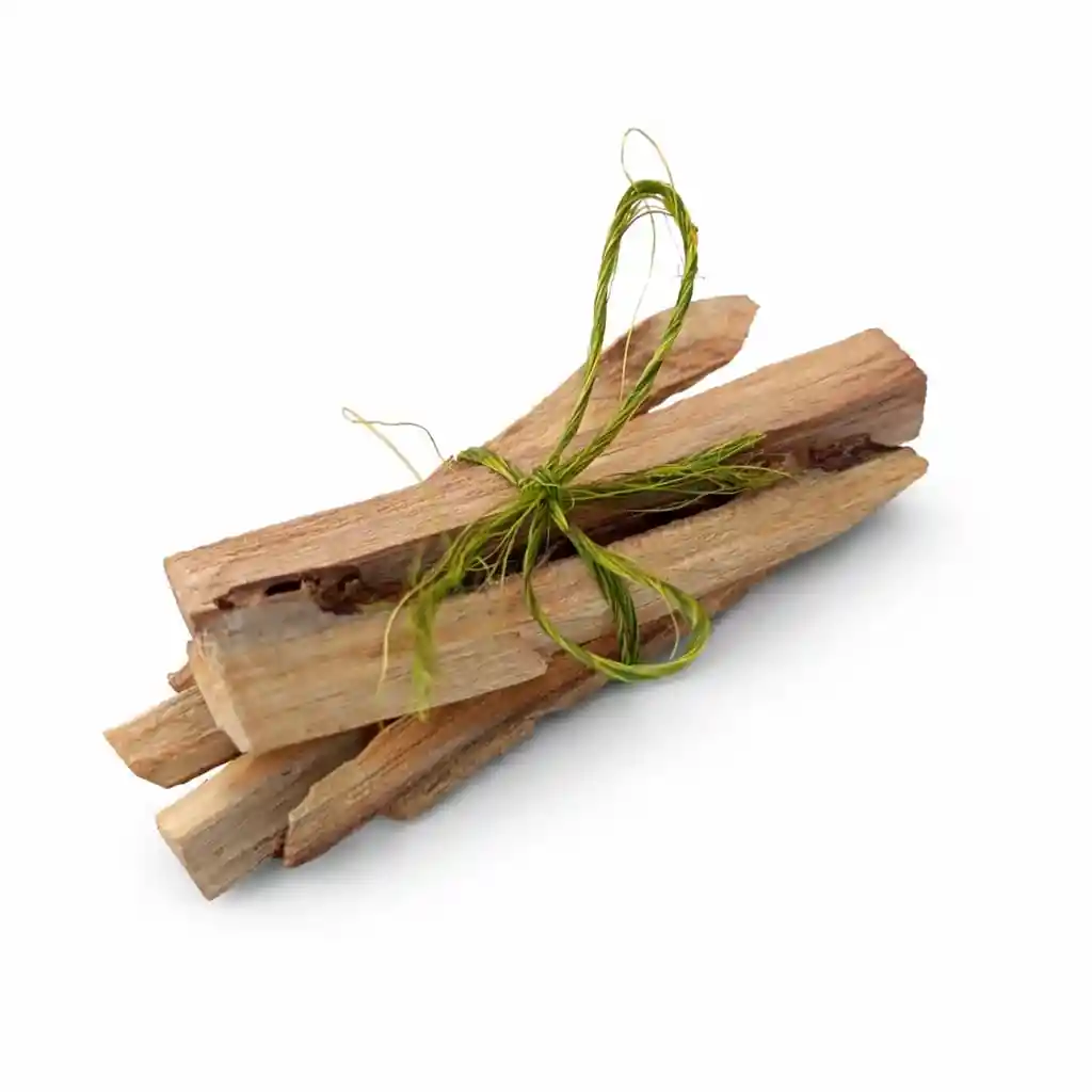 Atado de palo santo natural, una madera aromática tradicional conocida por su fragancia cálida, dulce y ligeramente cítrica. Se utiliza para limpiar energías, relajar el ambiente y aromatizar espacios, siendo muy común en prácticas de meditación, bienestar y rituales. Para usarlo, enciende una punta del palo, deja que arda unos segundos y luego sopla la llama para que libere humo; recorre el espacio o déjalo en un recipiente resistente al calor mientras se consume lentamente.