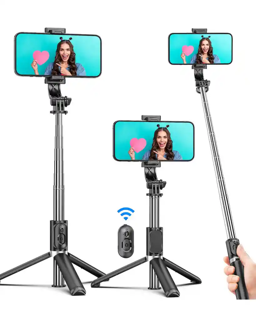 Tripie y Selfie Stick Bluetooth 360° con Mini Control Remoto, se adapta mejor a sus necesidades cuando toma selfis, transmisión en vivo, la longitud retraída de 16.6 cm y extendido es de 90 cm aproximadamente. No se preocupe si es compatible con cualquier sistema operativo de cualquier celular, el Bluetooth personalizado para el Selfie Stick se conecta rápidamente a su celular. Está hecho de ABS + acero inoxidable, es fuerte, duradero y estable, adecuado para reuniones familiares y reuniones de amigos, viajes, caminatas, campamentos y otras actividades deportivas. Ya sean actividades de interior o al aire libre. Distancia de control Bluetooth le permite tomar fotos usted mismo o quitar el control remoto para tomar una foto grupal.