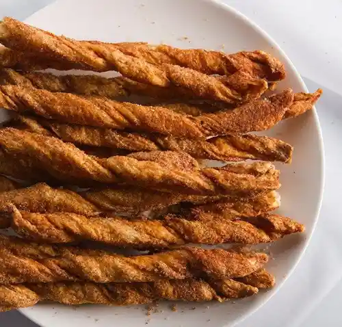 Palitos de hojaldre entorchados rellenos de azúcar y canela