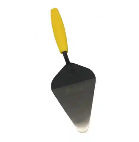 Elaborado en acero 1060 templado. Hoja recta, esmerilada. Cabo sujeto a la hoja. Mango Plástico de Calidad. Construcción, usado para revolver, mezclar, sentar y pulir cemento. Imagen de referencia