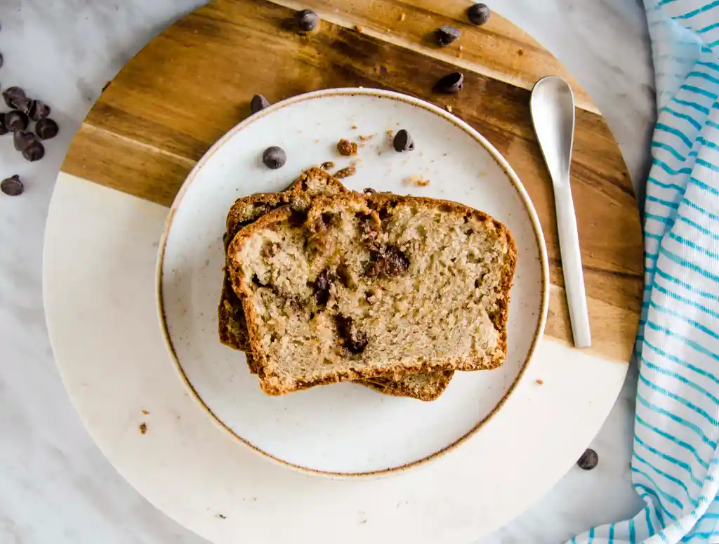 Esponjoso pan de banano con trocitos de chocolate. Bloque 9-10 porciones