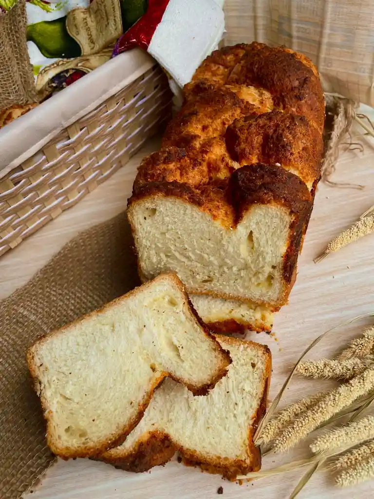 Pan crema. ¡Suave por fuera, cremoso por dentro! Disfruta de nuestro pan artesanal de 380 g de masa esponjosa, relleno con 150 g de queso. Perfecto para acompañar tus mañanas o tardes de antojo.