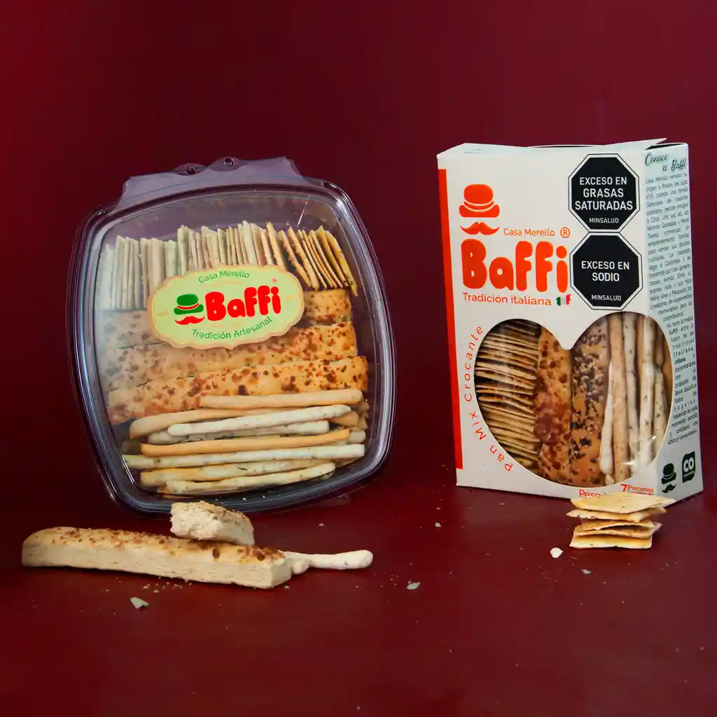 Mezcla de galletitas saladitas para acompañar tablas de quesos y jamones.