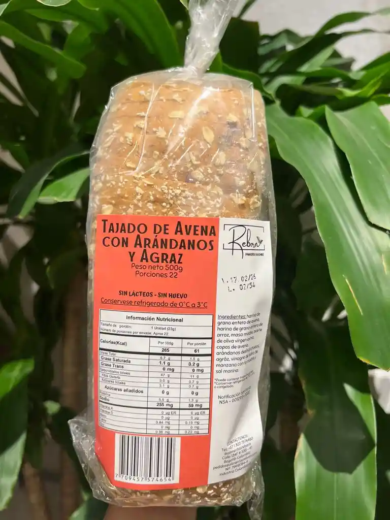 Harina de grano entero de avena, harina de grano entero de arroz, masa madre, aceite de oliva virgen extra, copos de avena, arándanos deshidratados, agraz, vinagre de sidra de manzana con la madre y sal marina.