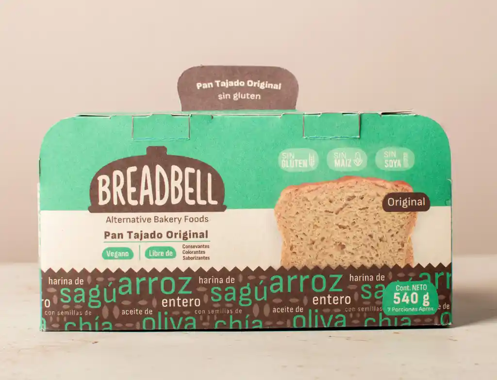Pan tajado original vegano 100% sin Gluten, presentación de 540g. Hecho con harina de arroz, quinoa y sagú, es la opción perfecta para el desayuno y las ocasiones especiales. Prepáralo en tostadas, sándwiches o cómo prefieras! Un pan 100% Sin Gluten en el que puedes confiar ¡Fresco, come pan! INGREDIENTES: Arroz, Agua, Almidón de sagú, Almidón de yuca modificado, Harina de arroz, Harina quinua, Aceite de oliva extra virgen, Azúcar orgánica, Goma Xanthan (Estabilizante), Vinagre de manzana, Chía molida, Sal marina, Levadura (Leudante). CONSERVACIÓN: Mantener refrigerado a una temperatura entre 2°C y 6°C. Una vez abierto el empaque consumir en el menor tiempo posible. PRESENTACIÓN: 540g, 3 packs, 15 tajadas, 5 tajadas x pack