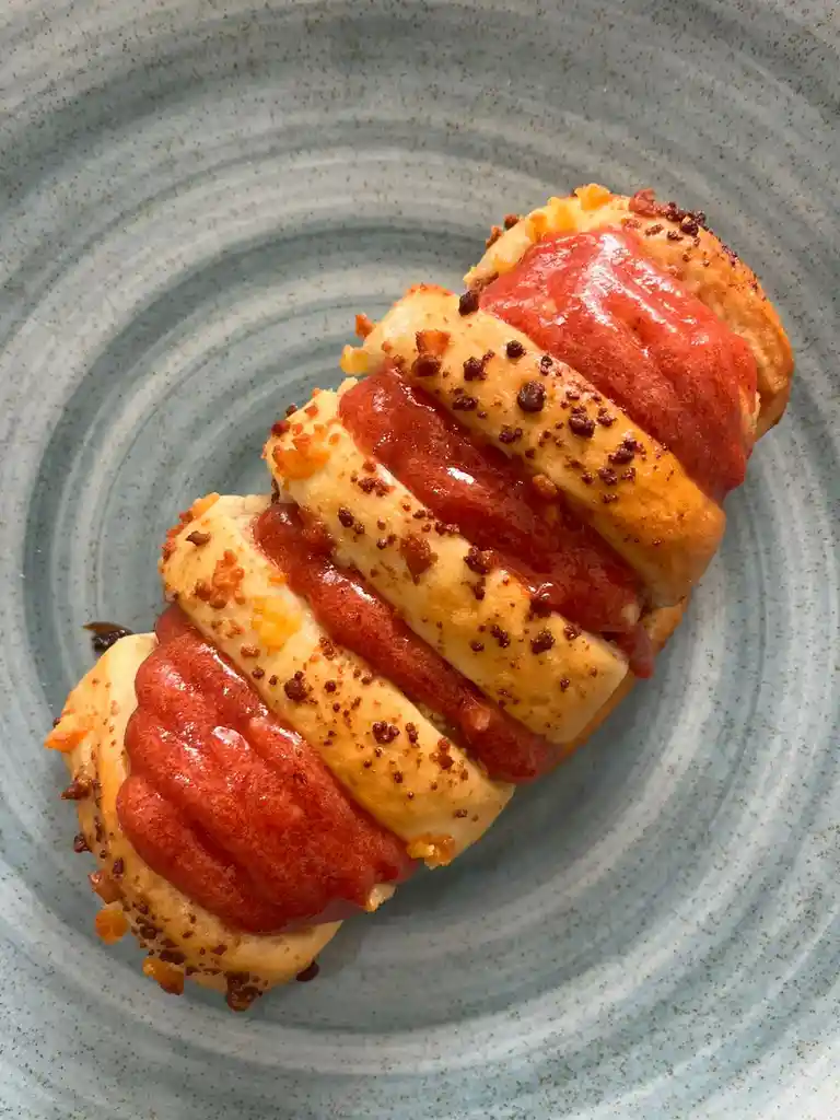 Pan relleno de bocadillo y cubierto de queso