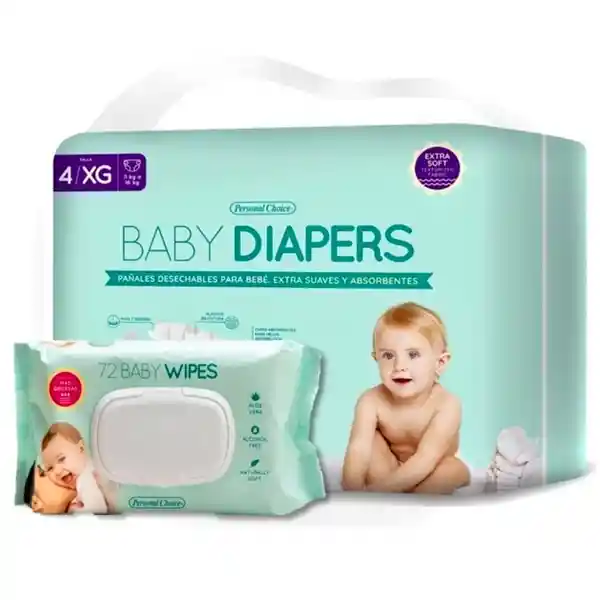 Contiene 2 Unidades Pañales Personal 1 Und + Toallitas 1 Und.