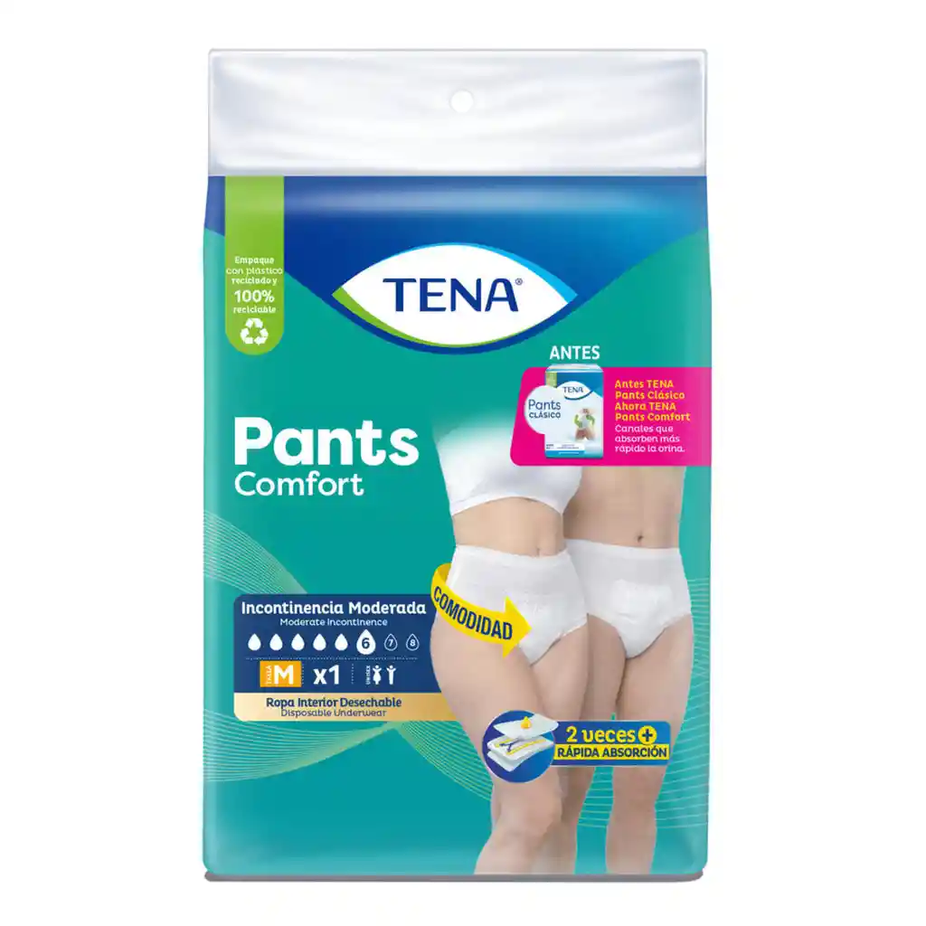 ropa interior absorbente para incontinencia moderada, con un diseño que se usa como una prenda normal, para una piel más seca y segura gracias a su zona de absorción con tecnología TENASORB que gelatiniza líquidos y neutraliza olores.