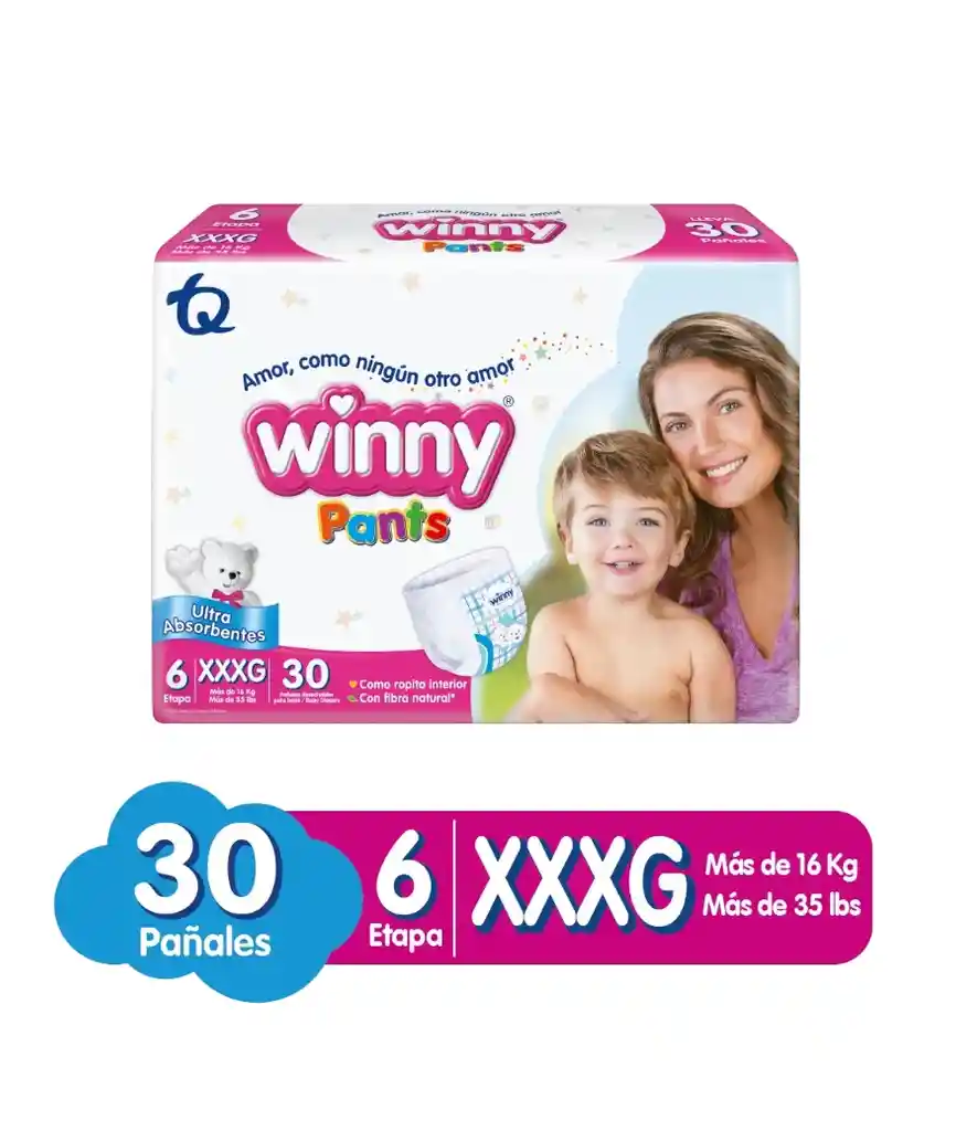 Panal Winny Pants Etapa 6x30 Los pañales Winny Pants están fabricados con materiales suaves y transpirables que permiten la circulación del aire y evitan la acumulación de humedad en la piel del bebé.