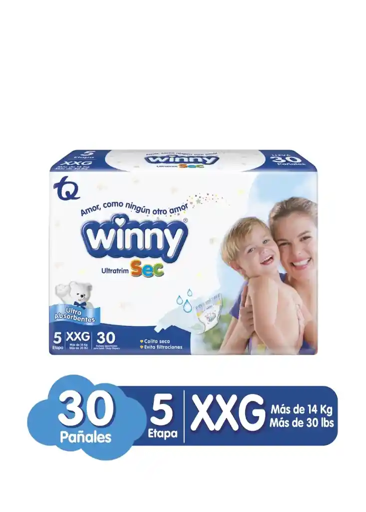 Panal Winny Ultratrim Sec Talla Xxg/5 X 50 Und Los pañales Winny Ultratrim Sec están diseñados con tecnología de absorción avanzada que ayuda a mantener la piel del bebé seca por más tiempo. Están fabricados con materiales suaves y de alta calidad para brindarle confort al bebé y prevenir posibles irritaciones.