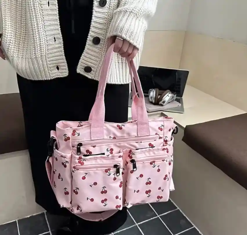 👜🍒 Pañalera de Cerezas 🍒👜 Hermosa pañalera con estampado de cerecitas, perfecta para acompañar cada aventura con tu bebé reborn o muñeca 🍓👶 (¡súper tierna!). Su diseño alegre y delicado la convierte en un accesorio encantador y práctico 💕✨. 🍒 Estampado dulce y moderno 🍼 Ideal para guardar pañales, tetero y accesorios 💗 Liviana, cómoda y fácil de llevar 👧 Perfecta para juegos de rol y cuidado del bebé 🎁 Ideal como regalo para niñas ¡Un accesorio lleno de color, ternura y estilo! 🍒✨💖