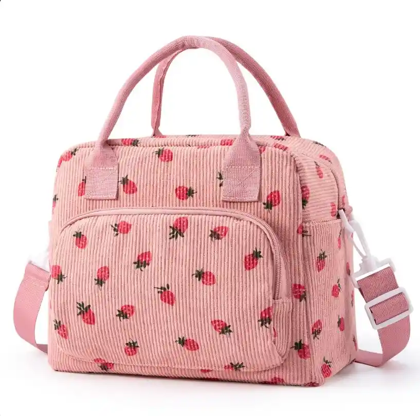 🍓✨ Pañalera Fresas ✨🍓 Hermosa y práctica pañalera con diseño de fresitas 🍓😍, perfecta para llevar todo lo esencial de tu bebé con estilo 💖🍼. Cuenta con material resistente y fácil de limpiar 💧🛡️, ideal para el uso diario, salidas o viajes 🚼👜. Su tamaño práctico te permite organizar pañales, toallitas, ropa y más 🧻👶. ¡Funcional, adorable y llena de dulzura! 🍓💕