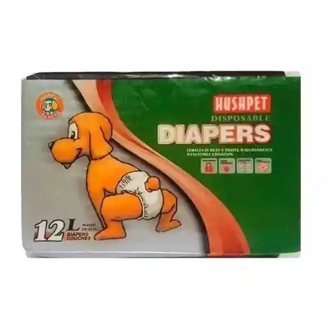 Los pañales desechables Hushpet son una solución efectiva y simple para perritas en calor, perritos con incontinencia urinaria o con excitación urinaria, cachorros o simplemente para un viaje. Trae un indicador de humedad que le permite saber cuándo es hora de cambiar a su perro o mascota. Cada pañal tiene una barrera contra las fugas para evitar filtraciones. Además tiene sujetadores con protección que se ajustan a la forma de su mascota y tiene cierres reposicionables con cobertura en la cola para darle el mejor ajuste a su perro en cada uso