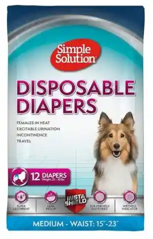 -Cuentan con un tejido único y elástico que se adapta cómodamente a su mascota. -El núcleo súper absorbente está diseñado específicamente para bloquear toda la humedad dentro del pañal. -Se mantiene en su lugar con ajustes adhesivos que no dañan la piel y evitan que el pañal se salga. -Estos pañales desechables de Simple Solution con ajuste a prueba de fugas le brindarán la tranquilidad sin importar a dónde vaya.