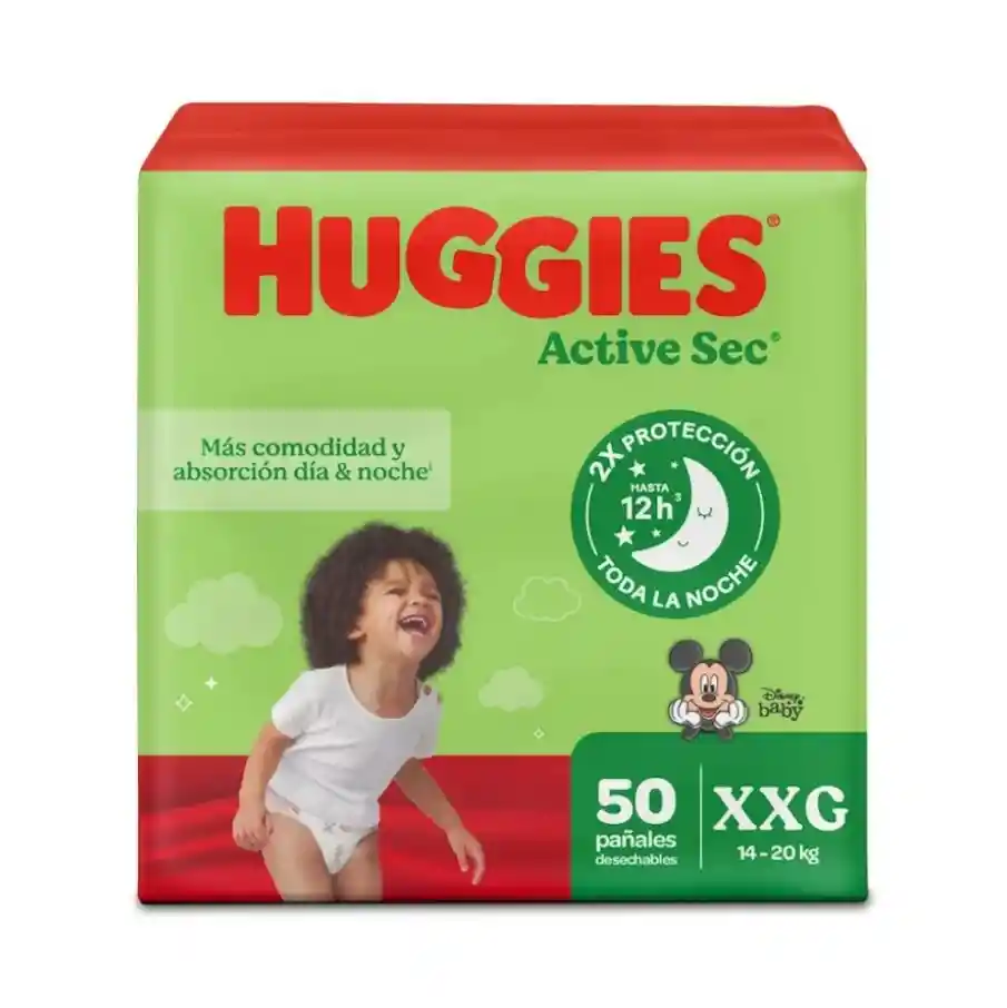 Los Pañales Huggies Active Sec Etapa 5 x 52 und están diseñados para bebés más grandes y activos, brindando una protección completa tanto de día como de noche. Incorporan canales de absorción en forma de X, que distribuyen el líquido de manera uniforme, evitando acumulaciones y ayudando a mantener la piel seca por más tiempo. Cuentan con un sistema de doble protección nocturna, ideal para largas horas de uso, permitiendo que el bebé duerma tranquilo sin filtraciones. Además, su tecnología XtraFlex se adapta a cada movimiento, ofreciendo mayor flexibilidad y comodidad mientras el bebé juega, camina o explora. También incluyen barreras antifugas y cintura elástica, que se ajustan suavemente al cuerpo sin incomodar, ayudando a prevenir derrames incluso en movimiento constante. Su diseño favorece la transpiración y cuida la piel, reduciendo el riesgo de irritaciones. Su presentación de 52 unidades en talla XXG (etapa 5) es ideal para el uso diario, ofreciendo una opción práctica, cómoda y confiable para mantener al bebé seco, protegido y con total libertad de movimiento.