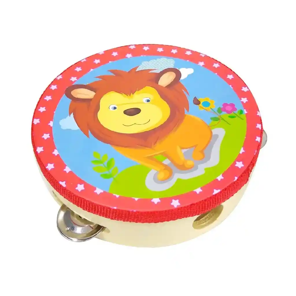 Pandereta mediana, liviana. Ideal para bebés de 4 meses en adelante. Estimula el agarre y la audición.