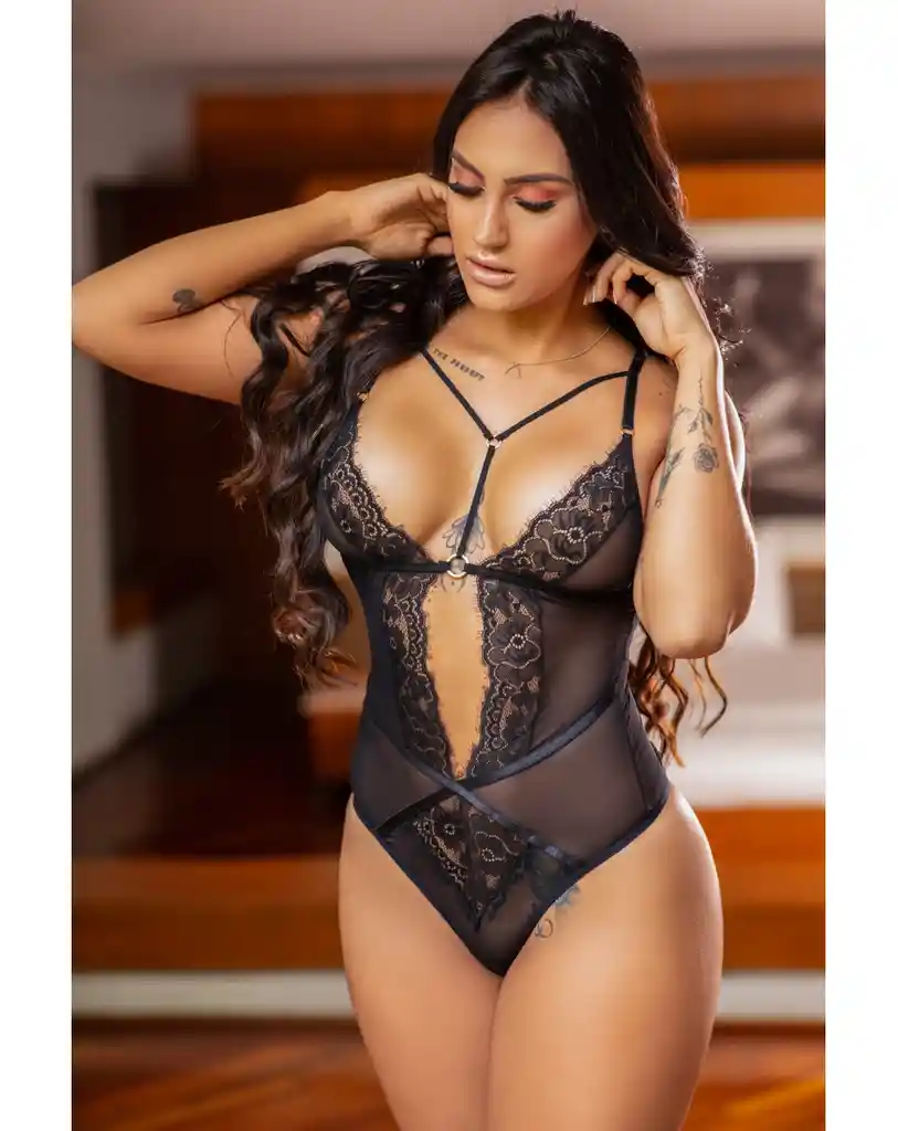 Body Sexy ajustable. Cuidados: Lavar a mano o en el proceso de prendas delicadas. Garantía: Por ser una prenda de uso íntimo no se aceptan devoluciones, solo se cubre garantía por defectos de fabricación. PRODUCTO 100% NACIONAL Conjunto Trikini 1 Piezas. Talla Única Ajustable Tallas S - M Material: Encaje y Mallatex.