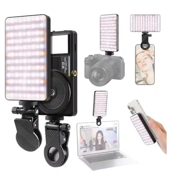 Luz de vídeo LED magnética de doble cara, luz de relleno LED de doble cara, luz de videoconferencia regulable para computadora, tableta, teléfono móvil, cámara réflex digital, batería integrada con clip y adaptador para zapatos fríos Características: luz de relleno LED de doble cara: con 108 perlas de lámpara en la parte delantera y 21 cuentas de lámpara en la parte posterior, esta luz de vídeo LED de doble cara ofrece una fuente de luz doble para diferentes escenarios de uso. Un CRI de más de 95 garantiza que los colores de los sujetos se reproduzcan con precisión. Temperatura bicolor de 2500 k-9000 K y regulable: cuenta con una amplia gama de colores ajustables con temperaturas de 2500 K a 9000 K, esta mini luz de relleno LED ofrece opciones de iluminación cálida y fría. Y 10 niveles de brillo ajustables cumplen con tus requisitos específicos. Batería de gran capacidad: esta lámpara de videoconferencia cuenta con una batería integrada de 2000 mAh para un uso prolongado y se puede cargar a través de una interfaz tipo C desde varios dispositivos, como bancos de energía, ordenadores portátiles o adaptadores de corriente.