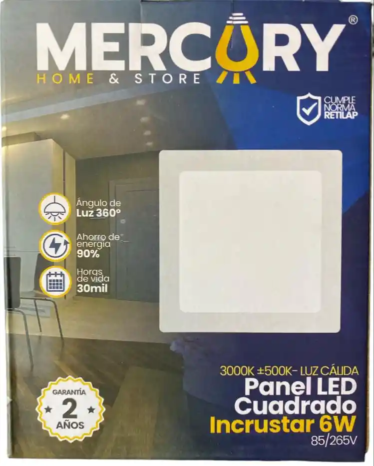 PANEL LED CUADRADO 6W 4" LUZ CALIDA 3000K INCRUSTAR
