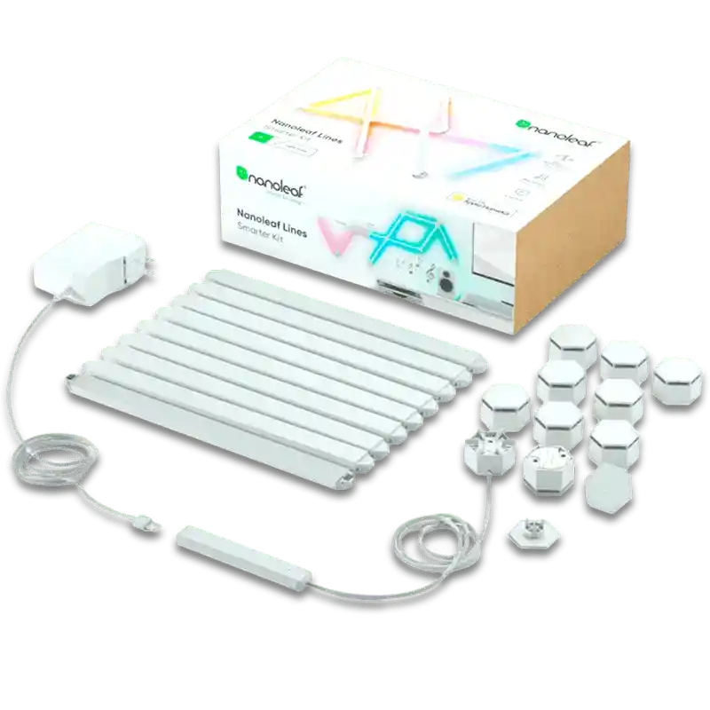 Especificaciones: Incluye: 9 Light Lines 9 Conectores de montaje y tapas 1 Controlador 10 Placas de montaje y cinta 1 Procesador y conector de alimentación 1 Fuente de alimentación de 100 VCA ~ 120 VCA (EE. UU./CA) 1 Guía de inicio rápido Compatibilidad: Apple HomeKit Google Assistant Razer Chroma Garantía: 24 Meses