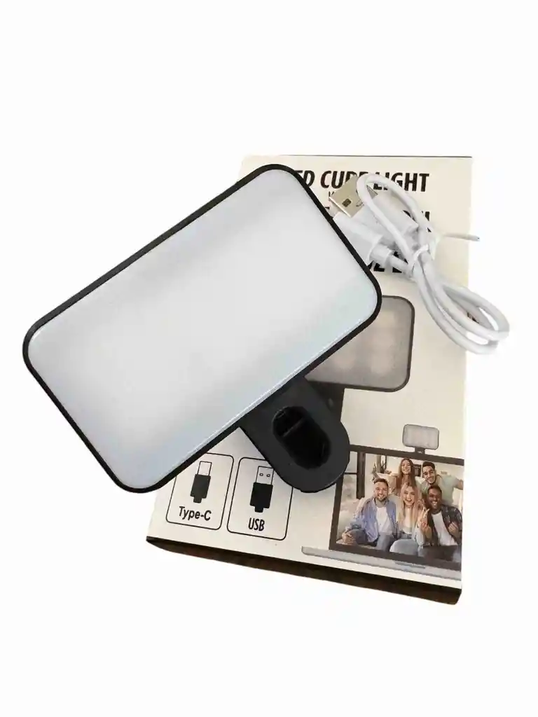 Mini panel de luz recargable para celular con gancho Recargable mediante cable USB tipo C. Bateria interna. Duracion de uso de al rededor de 1h continua. Tiempo de carga de 1h a 2h Un boton para cambiar de tonalidad de luz Un boton para elegir la intensidad de luz Medidas: 7.5cm*4.5cm