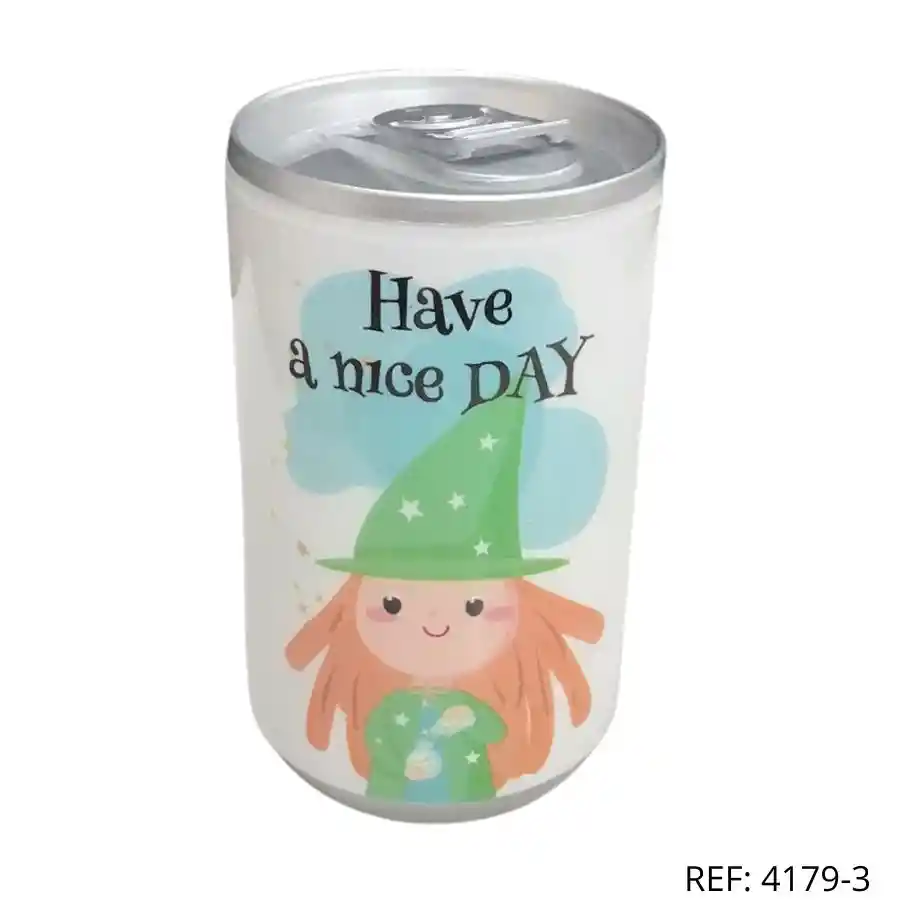 Lata con pañitos húmedos, diseño “Have a Nice Day”. Ideal para niñas. Práctica, mágica y perfecta para el bolso.
