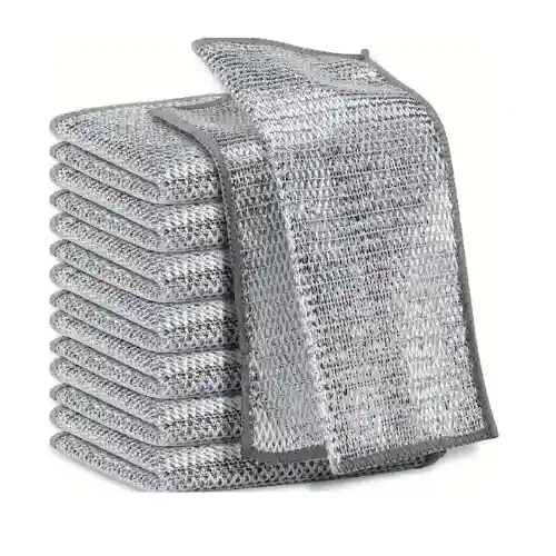 lavavajillas de alambre antirayaduras Estos paños de cocina de alambre multiusos están diseñados para fregar y limpiar eficazmente platos, fregaderos y más. Diseño que... ahorra espacio Con un diseño de superficie de tela con rejilla de escamas, estos trapos de alambre absorben la humedad al instante, lo que facilita su limpieza. Después de usarlos, simplemente cuélguelos en la pared para ahorrar espacio en la cocina y facilitar el drenaje. Duradero y reutilizable. Duradero y reutilizable.
