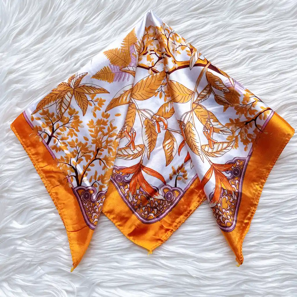 Pañoletas en satin, tamaño 50 cm x 50 cm. Ideales para elevar tus outfits.