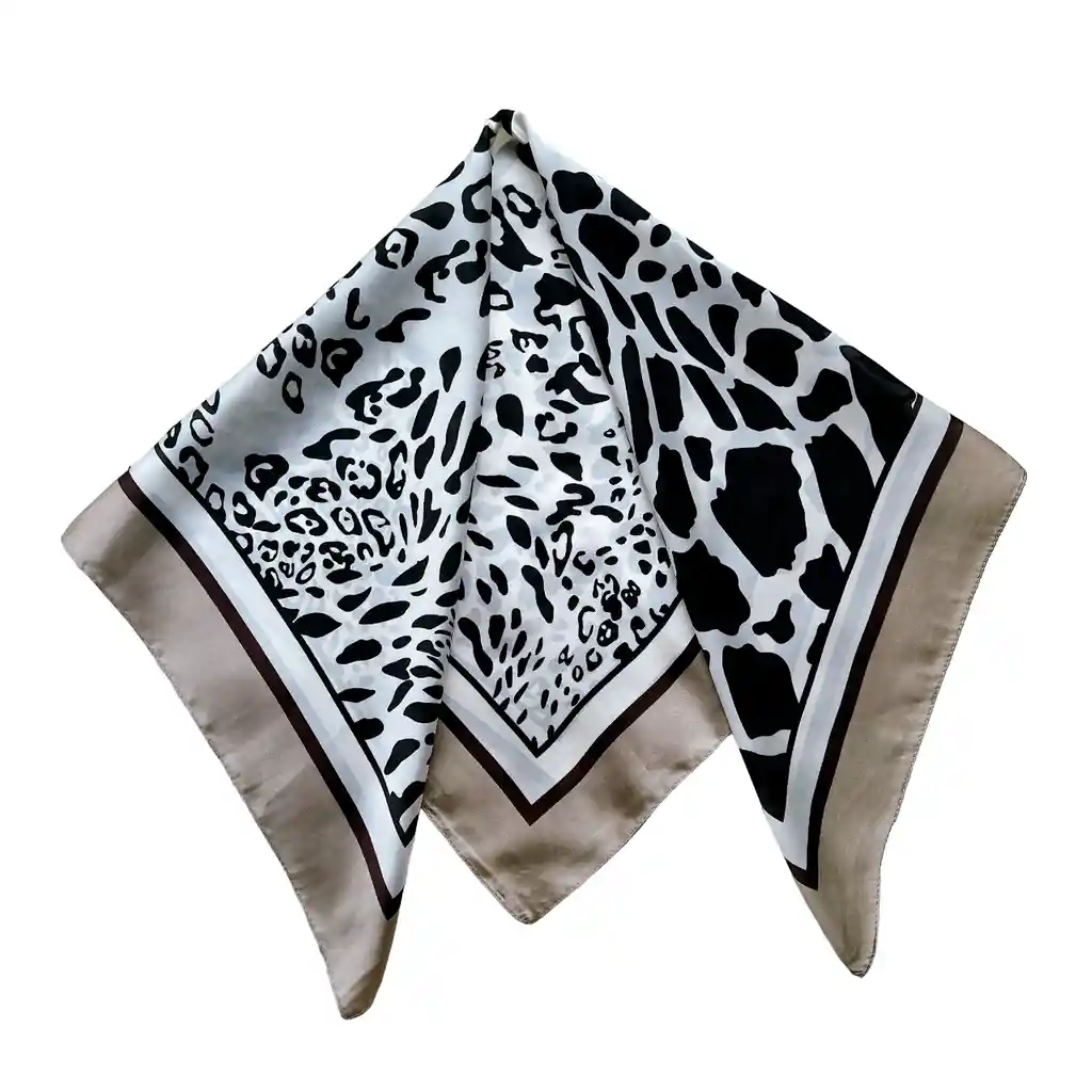 Pañoletas en poliester ideales para acompañar tus outfits. Referencia: Animal Beige. Medida: 70 cm x 70 cm