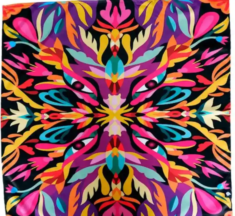 Pañoleta Amazona No se puede hablar de muralismo o street art Colombiano sin mencionar a Ledania. Diana Ordoñez no solo es la representación del alcance que puede tener un artista Colombiano, trabajando con marcas gigantes a nivel mundial y liderando equipos para pintar macro murales sino que es la representación en carne viva de lo que puede lograr una mujer cuando decide poner las criticas, el odio y la desigualdad histórica en su espalda. Ledania es una gran inspiración para personas como nosotros posicionando un proyecto de manera independiente en Latinoamérica, especialmente por que venimos de la misma ciudad y conocemos desde hace años el esfuerzo que ha hecho Ledania por llegar a donde está ahorita. Todo el mérito y respeto para Diana, si aun no conocen su trabajo se están perdiendo de ver algunas de las obras mas aclamadas en la industria, un uso de color impecable y una identidad de artista que se plasma solo cualquier superficie y proyecto. Es un honor poder mostrarles esta colaboración y fue un placer para nosotros como equipo co-diseñar esta colección para traer las obras de Ledania al mundo del streetwear. Ésta prenda hace parte de nuestra colaboración con el artista de Bogotá, Ledania. Pueden seguir su trabajo en Instagram como @Ledania Todas las prendas de ésta colaboración fueron diseñadas y estampadas en Bogotá, Colombia. Detalle de producto Pañoleta Amazona DISEÑADO EN BOGOTÁ, COLOMBIA Tamaño: 70cm x 70cm 100% Hecho en Colombia 100% Poliester Marquilla tejida de Cloud Ten en borde Impreso con impresión digital.